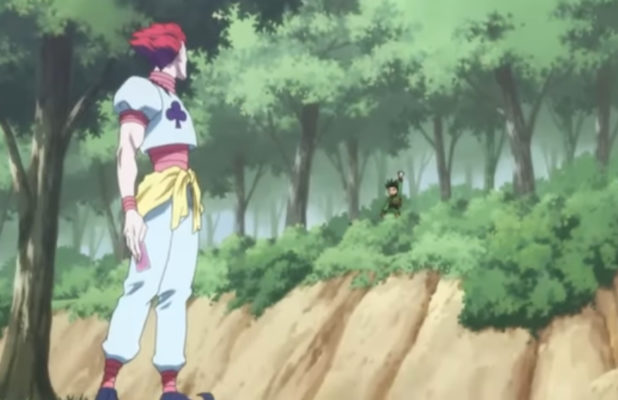 ตกกลางคืน Hisoka กลับมาตามล่าเหยื่ออีกครั้ง ในที่สุดก็เห็น Kurapika กับ Leorio อยู่ห่างออกไป และเลือกที่จะไล่ล่าพวกเขา Gon ตามไปด้านหลัง เขารู้ว่าเพื่อนใหม่ทั้งสองกำลังตกเป็นเป้าหมาย ในตอนแรกเขาอยากยึดติดกับแผน แต่พอคิดได้ว่าต้องเสียสละเพื่อนด้วย เขาจึงตัดสินใจว่าจะช่วยพวกเขาถ้าสถานการณ์เลวร้าย Kurapika กับ Leorio เจรจาตัวเองออกมาจากอันตรายที่ Hisoka สร้างได้ และ Gon ยังคงเฝ้ามองเขา ความกระหายเลือดของ Hisoka พลุ่งพล่านขึ้นในตอนกลางคืนและส่งความหวาดกลัวอย่างรุนแรงแผ่ซ่านไปถึง Gon นี่เป็นครั้งแรกในชีวิตที่เขารู้สึกถึงออร่าอันน่าหวาดหวั่น
